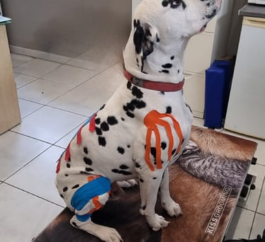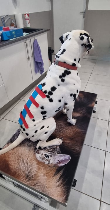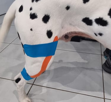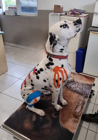 Le kinesiotaping pour chiens est une méthode thérapeutique qui offre un soutien aux muscles, ligaments et tendons, tout en respectant le mouvement naturel de l'animal